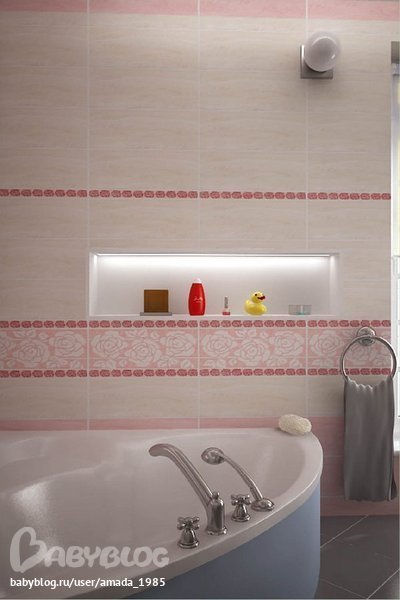 Хотя у меня у самой розового цвета ванная, полностью однотонная.