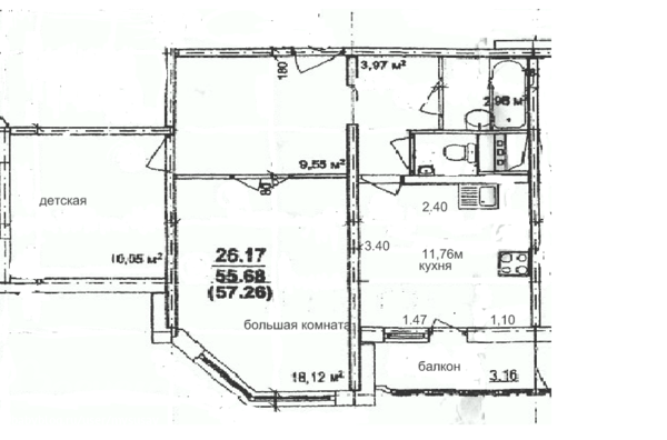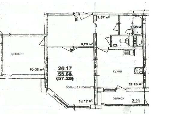 Можно попробовать и такой вариант: отдельно детская 10 м2, отдельно кухня 12 м2 и перенести горизонтальную стенку (эта стена не является несущей) большой комнаты к окну. Вместо 18 м2 комнаты можно сделать около 10-12 м2 и использовать только как спальную комнату. Комната 9, 5 м2 + приблизительно 6-8 м2 итого 15 м2 - вот вам и гостиная.