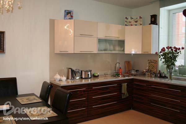 Интерьерное решение кухниВсем доброго время суток)))я все смотрю-смотрю,читаю-читаю ваши посты,а самой как то руки все не доходят что-то написать...Решила и я поделиться своей новостью!Недели 2 назад мы заказали кухню!Я так рада!Это будет наша квартира(в данный момент живем с родителями мужа).Меня так греет это ремонт,скорее бы скорее уже)))Ну а сейчас о кухне.Заказали в кухнях Мария.Низ будет темный(цвет зебрано серо-беж).Он что-то типо венге и молочными проблесками,а верх белый(молочный) пластик.Вообще изначально я хотела кухню венге,а фартук ярко красным,но когда увидела цвет на образце,представленном в салоне,просто влюбилась в этот зебрано)))Через недели 3 должны привезти кухню и тогда я ею похвастаюсь)))Теперь вопрос,каким сделать фартук???не хочу белый,серый,хочу яркий.Девочки,у вас есть идеи?тоже самое с обоями...)))