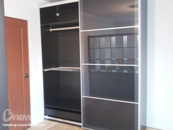 Второй половинки фото нет, но там сверху такая же полка, двойная штанга и корзина под обувь.