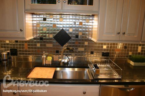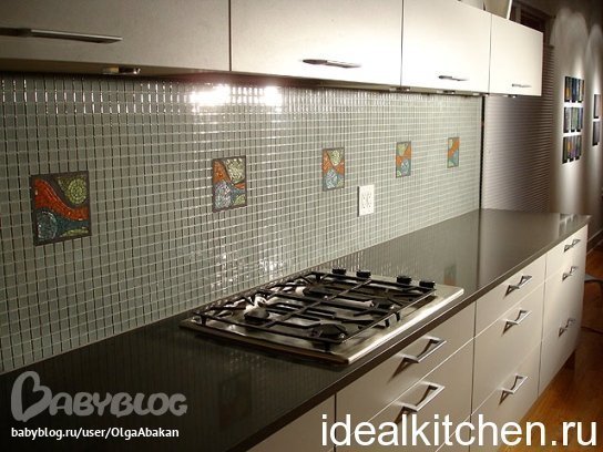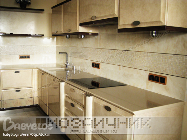 Так вам всё таки какая плитка предпочтительнее - мозайка или 10*10? Если укладывать маленькую плитку то нужно очень аккуратно выбирать цвет стиль и т.д. Т.к. кухня шикарная, а плиткой вся шикарность смажется. Покидаю фото из интернета..