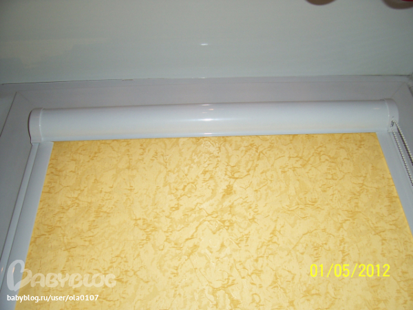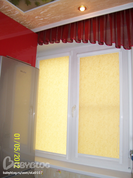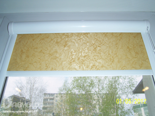 Декор окон. Текстиль. Жалюзи.Еще их называют роликовыми, точечными, в общем кто как! Сделали кухню и встал вопрос о шторах. Мы живем на втором этаже, но напротив наших окон стадион и пешеходная дорожка, поэтомы в квартире видно все как на ладоне. Раньше вместо штор у нас висели вертикальные жалюзи. О Боже! Как они меня достали я их просто ненавидела!!! Как я мечтала их выкинуть! В общем когда дошло дело до окна, мужу поставила условие, что будут шторы, он противился, говорил, что все будет видно, даже в трусах не пройдешь:)))) Вот я и нашла выход точечные жалюзи! Пришлив фирму, спрашиваем цену, они нам говорят от 2,8 т.р. за окно, ну мы обрадовались, губу раскатали, как хорошо, так дешево. Девушка сказала, придет замерит, принесет образцы ткани и через неделю будут готовы. В назначенный день пришла, пока мерила, мы с мужем выбрали, что нам понравилось. Говорим, ну , что мы 2,8 платим, она говорит, нет подождите, я вашу ткань посчитаю. В итоге вышло 4,2 т.р. Ну куда деваться пришлось покупать. Решил муж сам вешать эти жалюзи. Столо 500 рублей, он скащал, что я сам не повешу, короче потом пожалел. Совет: лучше пусть специалисты делают. В общем всем советую: первым этажам, у кого солнечная сторона, в детские. Ни какой пыли от них нет, в отличии если вы повесите портьеры. Короче мы довольны! фото ниже.