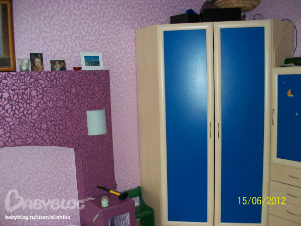 Интерьерное решение спальникак быть со шкафом, у нас вся спалня такая розово фиолетовая получилась, но теперь меня терзает шкаф с синими дверками, что с ними можно сделать, как заклеить что ли? сам по себе он удобный и пока менять его не будем, надо что так придумать, кровать такого же цвета (пока на балконе) была разобранна из за сына, но думаю уже можно вноь собрать её))) вот парочка фото))) простите за мини бардачек))) все в спешке пок Колюня спит)))