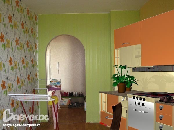 Уже заказали оранжевую ) Но комбинация белый-зеленый несомненно удачная.  Кухню пока передумали, да. Пока в коридоре мини-гардеробную решили делать, а в следующий ремонт скорее всего перенесём. Грех из 45 метров двушку не сделать ))