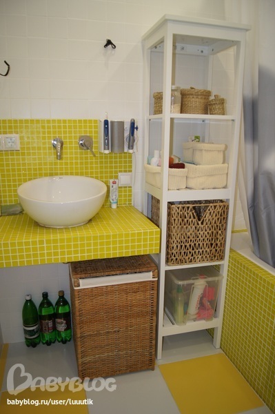 Ну смысл заходить туда из-за одной корзины?! Купили стелаж и всяких коробочек-корзинок для безделушек. Теперь все на своих местах ) Добро пожаловать в нашу ванную )