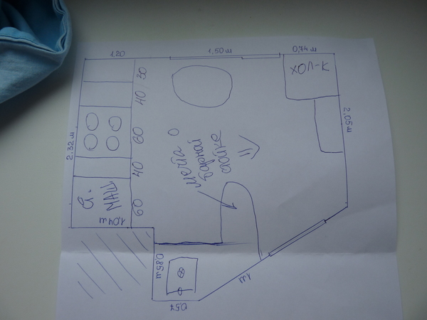 Я не знаю как разместить на такой кухне мебель, холодильник и стир. машину!!! Кухня хорошего размера - 9 кв.м., но балкон (что мешает завернуть столешницу к окошку, если даже это сделать - кухня совсем уменьшиться в р-рах, потому что на противоположной стороне вытяжка =((() Собственно говоря, проблема как раз-таки в ОГРОМНОм воздухоотводе =( (помечен полосами: 1метр на 0,85 метра) и входе в кухню, где расположена дверь - он наскосок =( Девочки, помогите, пжл, своими идеями, а то я уже "сломала" голову: хочеться бюджетный вариант, не под заказ (т.к. дороговато). Очень понравилась кухня СТОЛПЛИТ РЕГИНА 10 , но опять же вопрос в размещении мебели, хол-ка, стир. маш. и + надо где-то разместить обед. зону!!! ХЕЛП МИ ПЛИЗ =)))))