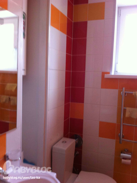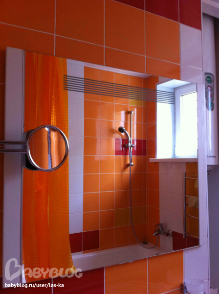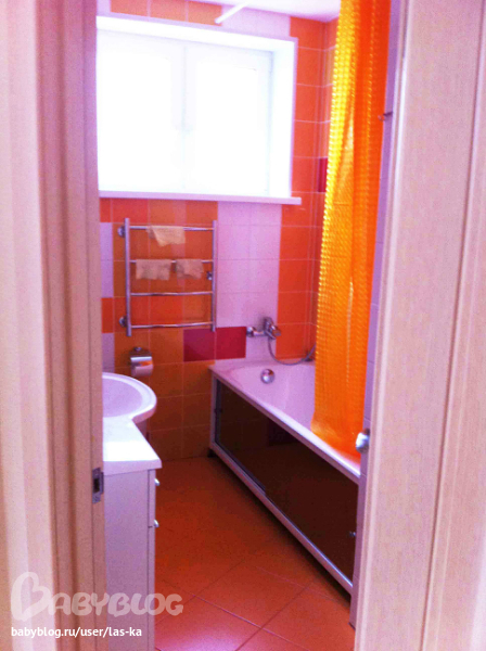 до этого сколько я плитки оранжевой не смотрела-все как-то не то или писец,как дорого. а у вас и бюджетно и весело! да,и шторку где нашли такую?)