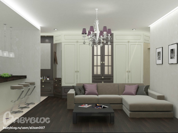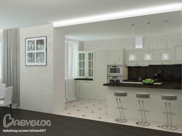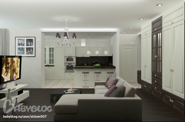 Это дизайн проект нашей гостинной совмещенной с кухней и коридором.10-ый по счету!До этого все забраковала.В разработке данного принимала сама непосредственное участие.Вот смотрю и чего то не хватает мне...Цвета наверное...А цвета где?Вот не вижу,хоть убейте!Или нормуль и так?Выскажитесь,пожалуйста,кому не лень)))))
