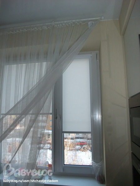 Минус этого карниза в том, что из-за крепления к стене нельзя сдвигать ни шторы, ни тюль, тк карниз (сама палка) как бы ложиться в дырочку кранштейна. Так что шторы у нас несут чисто декоративный смысл, а от солнца мы повесили кассетные шторы юни2 (заказывали у девочки на бб), хоть тут и говорили, что это полный совок))))) Закрываем мы их только летом до12 утра и по вечерам, когда стемнеет уже, иначе мы все как на сцене)))))) вот такие кассетные юни: