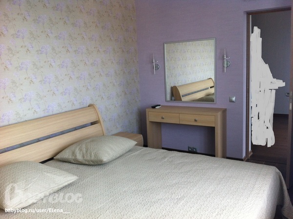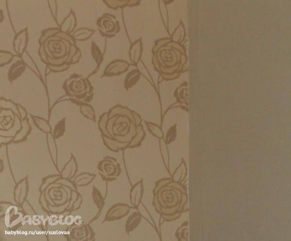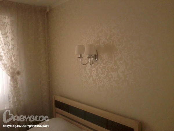 Мы тоже клеили обои-компаньоны и тоже в спальне. Резултатом очень довольна. Три стены одноцветные , одна с рисунком. На фото как раз виден угол, где стыкуются два вида обоев: