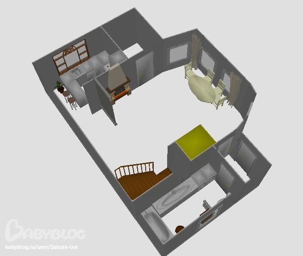 Перегородка рядом с камином будет такого плана у нас в том месте на потолке как раз большая деревянная балка.