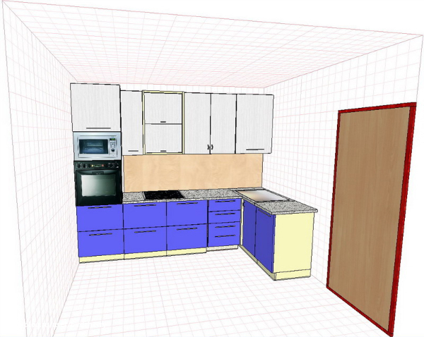 -Холодильник придется ставить напротив духовки на другую сторону. А это значительно уменьшает обеденную зону, придется ставить стол впритык к холодильнику и сесть за него в 4-ом уже не получиться.