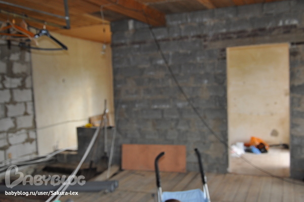 Слева вход в кухню, справа вход в маленькую кладовку, проем этот будет уменьшен. На потолке балки.