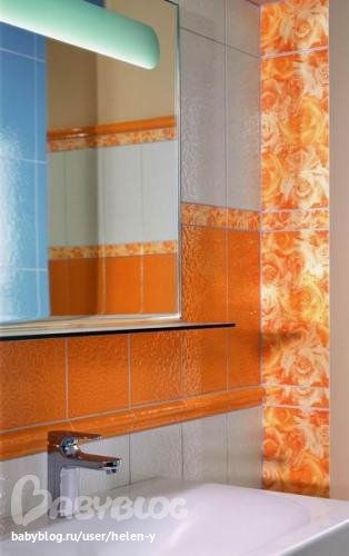 -правая стена от ванны у нас "лесенкой" выложено, но только лесенка сверху вниз - верх оранжевый- низ синий.