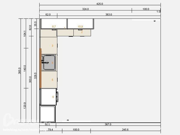 Слева от двери будет диванчик. Смущает что плита будет расположена близко к дивану. Безопасно ли это при наличии маленьких детей? Может какую перегородку сделать? Еще хочется духовку разместить повыше, чтоб не наклонятся и дети не обожглись