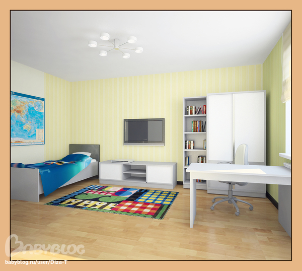 Примерно так, вместо обоев с машинками планируем разрисовать стену (мой папа очень хорошо рисует). Как Вам?