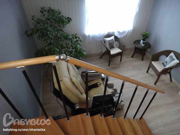 Интерьерное решение прихожих, коридорчиковЕсть в нашем доме, так называемая "ненужная комната". По проекту здесь была маленькая комната, отделенная стеной от коридора и лестницы. Мы, недолго думая, от идеи отделения этой комнаты отказались, так она стала частью холла. Мне думалось организовать здесь уютный уголок, пара небольших кресел, столик. Потом супруг приобрел массажное кресло, которое ,к сожалению, по внешнему виду к уюту не имеет никакого отношения.Поставить его было некуда, кроме как в "ненужную комнату" . А на днях любимая мама подарила нам огромный фикус... комната стал похожа на больничный коридор. Вобщем, я попыталась обуютить ее как могла.