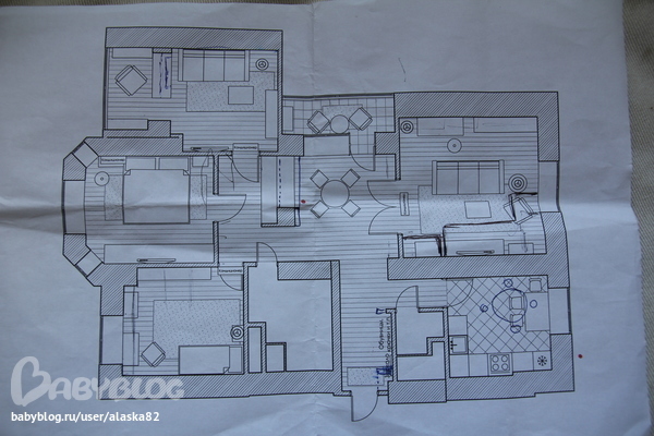 П.С. распределение по комнатам - детская, спальня, кабинет и зал. Ну и этот непонятный холл...........