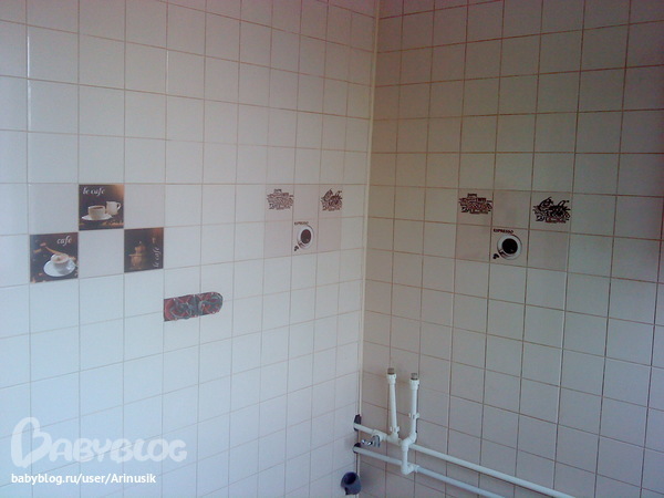 Плитка навеяла мысли о французском кафе) Цвета на кухне: сама кухня фисташковая, а аксессуары красные, стол под дерево (дуб или орех), стулья тоже красного цвета, на окно рулонная штора в горизонтальную полоску.