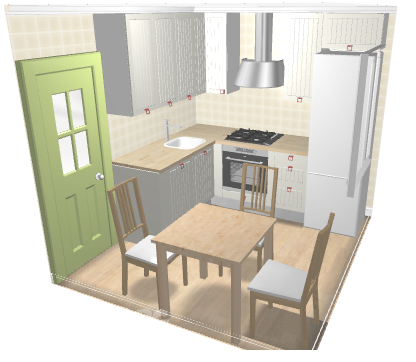 К сожалению, в программе нет красивого фисташкового цвета, поэтому кухня белая.