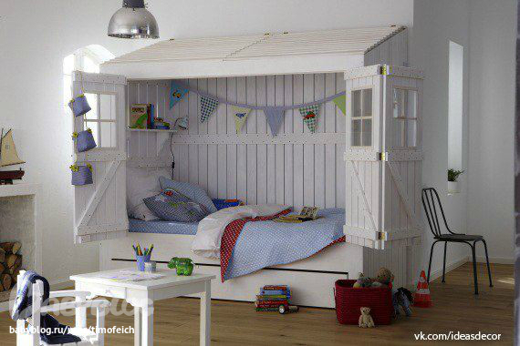 И где вы такую красоту раздобыли??? Нужно себе сохранить. Когда придет время детскую ставить будут варианты поинтереснее, чем просто кровать-чердак. А для небольшой комнаты все-равно можно исходя из этих идей замутить что-нибудь интересное. Например, если взять за основу кровать-чердак 6-ю снизу, то она вроде не очень много места занимает. И сделать шкафики, столик в тему. А если деток двое, то кровать такую можно и в двухъярусную превратить. А в интерьере стены красим и клеим всяких лесных птичек-животных. Еще классный вариант 4ый сверху. Если дети разнополые, то ставим 2 кровати одинаковые (можно постельное белье противоположное по тону), вешаем шторочки, чтобы детки спали как в отдельных комнатах и соответсвенно над другой кроватью плакатs с противоположными надписями - например "я крутая принцесса" и "я супер-парень".