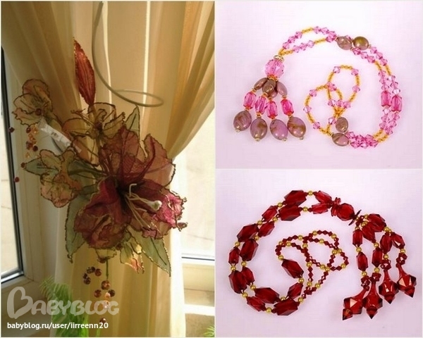 Отличные идеи, как раз не могу подхват для штор в спальню купить, ну не продают у нас нигде лавандового цвета. Решила из бус делать.
