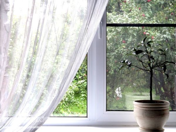 Интерьерное решение гостинойвот такой чудесный вид из окна нашей гостинной... спасибо соседям за прекрасные яблони. Специально не стала вешать на окно плотные шторы. Совсем скоро комната будет готова полностью, обязательно приглашу в гости :)