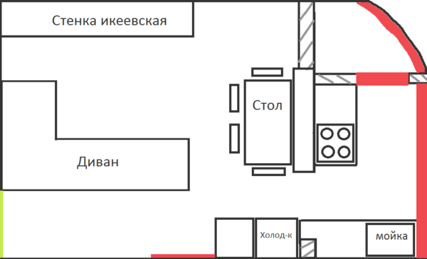 Сейчас у нас тут полное безобразие, т.к. после ремонта въезжали с той мебелью которая у нас была и соответственное просто все раставили по углам и забыли, но теперь постепенно подходим к вопросу о покупке новой кухни, и у меня нарисовался такой план..