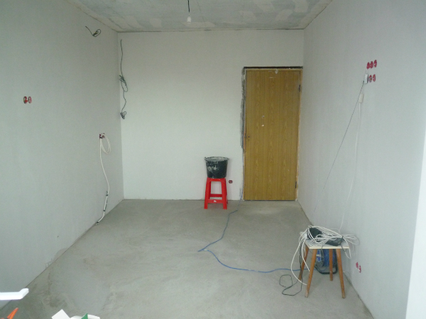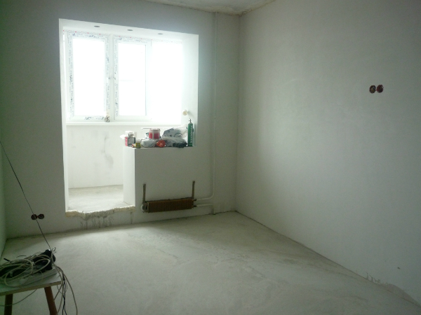 Интерьерное решение кухнипотолок натяжной, поклеить обои и на пол приклеить пробку. Мы из спальни делаем кухню-гостинную. Начало http://www.babyblog.ru/community/post/housedesign/1698330