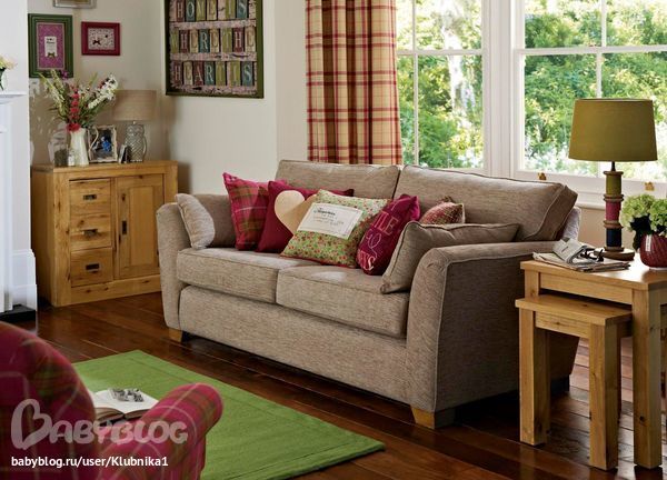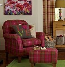 Основные шторы выбрала льняные бежевые икеевские. Уже висят. Под них хочу заказать сшить римские шторы на 2 окна. Размер 220Х180 каждое. Можно ли найти такнь примерно такой расцветки, как кресло? Хочу клетку и чтоб было сочетание зеленого с малиновым. Потому что подушки будут ровно такие, как на картинках выше.