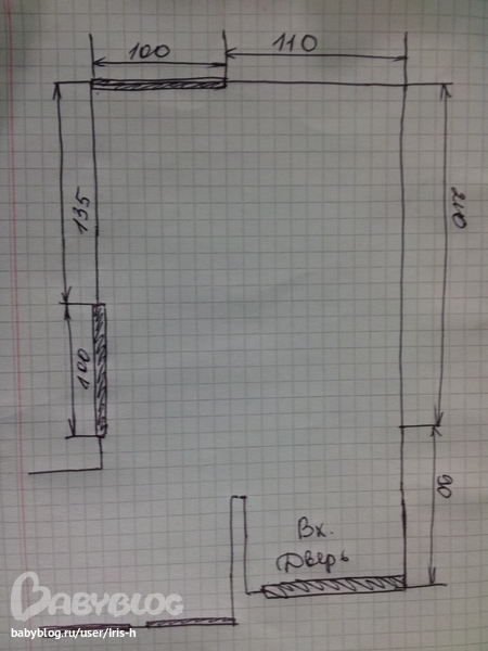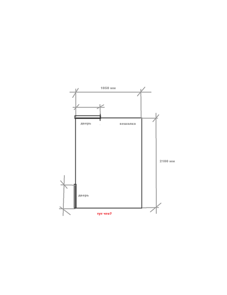 где б нарисовать, я б сама нарисовала, 105 от стены до двери, сама дверь еще 80 см примерно, 210 правильно, входная дверь на той стене., где написано "тут что?" там же двери в ванну и туалет, дверь справа чуть выше по рисунку, но это и не важно.