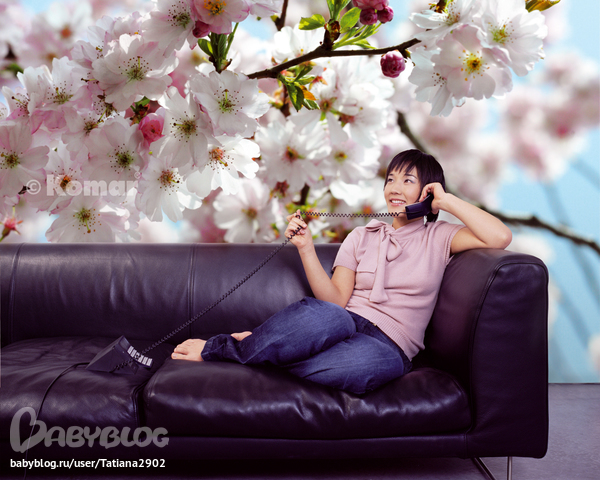 Первое что я увидела - цветы... И только потом, спустя минуту, поняла что на фото есть еще девушка, симпотичный диванчик... Наверное, зайдя в комнату с такой стеной,я бы надолго зависла)))