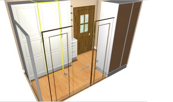Это мой проект со шкафами (шкафы будут купе, но таких образцов не нашла в программе):
