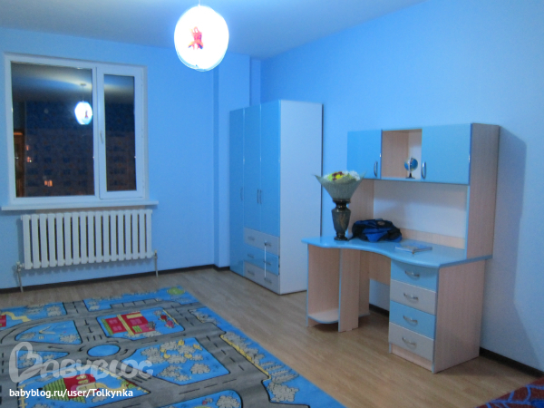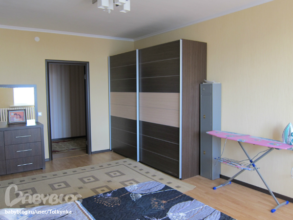 еще сын появился. снимала вечером, цвет не передался. А теперь наша спальня