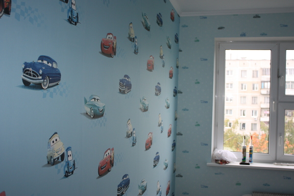 2.На фото шли как компаньоны. В реале оказались разной фактуры.Рисунок с крупными машинками-под штукатурку и толще.С мелким машинками-тоньше и фактура как бы в полоску,более гладкая.Вот эти тонкие при поклейке вообще пипец,как бумага туалетная.сквозь них вылезло все г....Стены сметали,тряпкой проходили.Бесполезно..