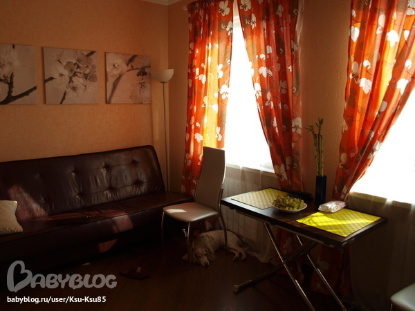 я так понимаю это гостинная? Для нее шторы в самую точку) ...а настроение улучшается) У нас вот бежевый цвет - буду менять на яркие. Главное чтобы в спальне были по спокойнее и плотные. Очень уютненько стало!)