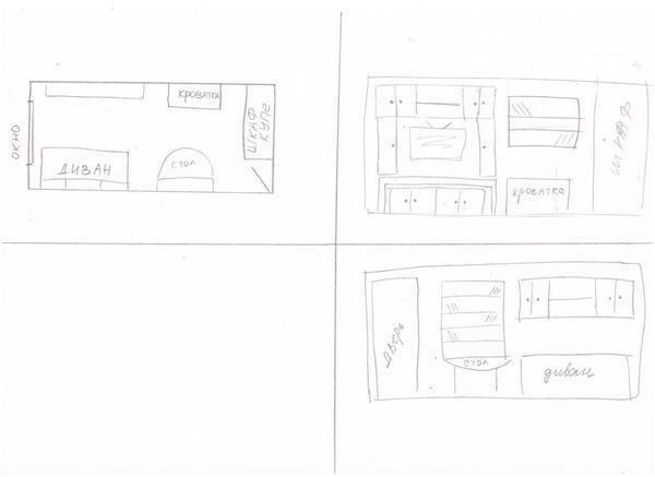 простите конечно. но как у вас много мебели - прям давит... я бы вообще избавилась от стенки - телек на стену, сверху полочки