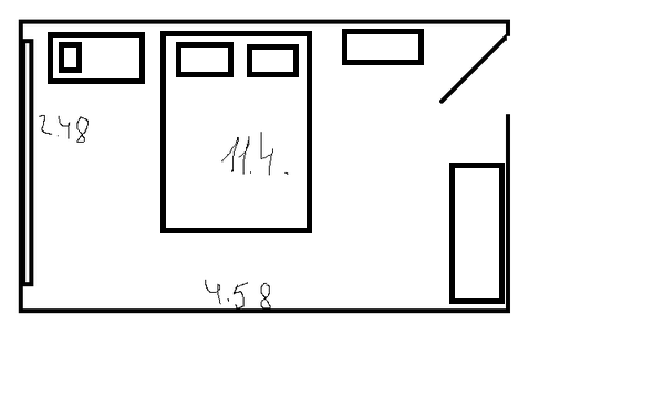 В наличии есть: Шкаф, длинной 180см и шириной 60см, стандартная детская кроватка 125см длинной и 65см шириной, наша кровать 180см длинной и 160см шириной и комодик 110см длинной и 45см шириной. Подскажите, как лучше все разместить.