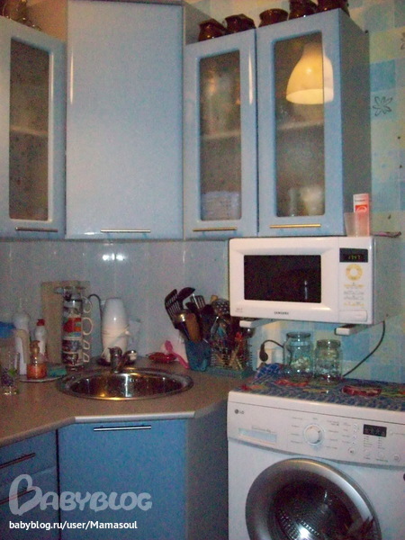 Микроволновка стоит на подоконнике-жутко неудобно и не нравится(((На столешнице еще соковыжималка(тк если убрать,то точно пользоваться не будем!) и чайник!