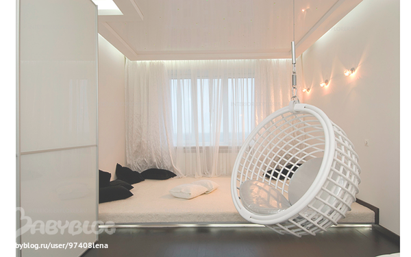 Да такой вариант тоже рассматривали, сейчас думаю, муж там и будет вечно сидеть, т.е. я его и видеть не буду, а в зале хотя бы видеть будет. Спальня конечно не вариант-там отдых полноценный и романтика.