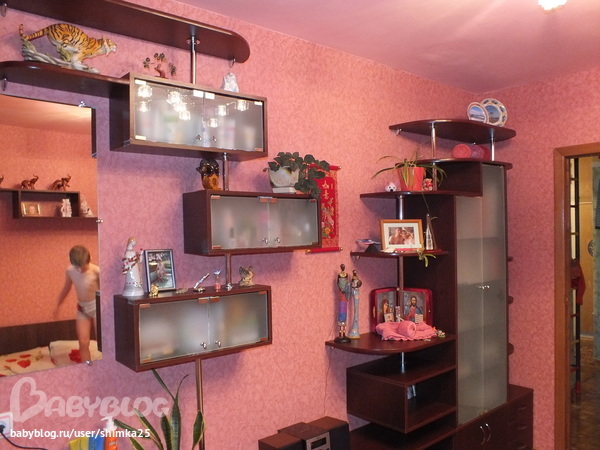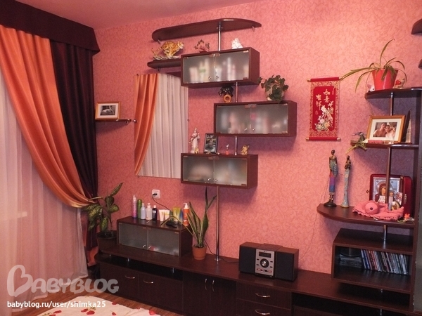 Стенка очень понравилось, но мне кажется на более светлых обоях было бы лучше, для меня слишком яркие обои
