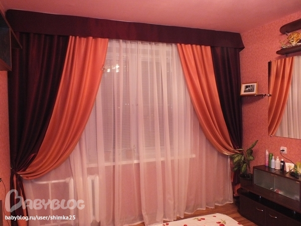 Шторы понравились - красивые, интересное сочетание цветов, вот только ламбрикен вверху я бы убрала наверное.