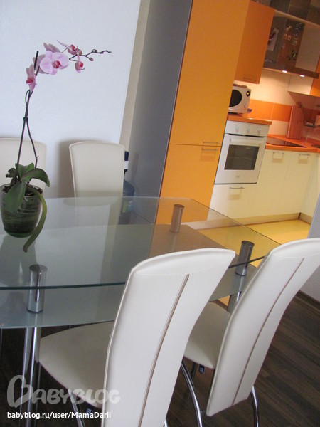 Спросите где стол? На старом месте кухни у нас теперь залл,но в нем нашлось место и для стола, вот как это