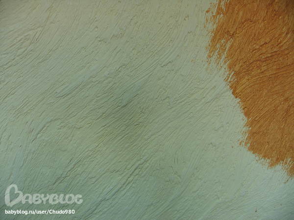 Далее нанесли саму декоративную штукатурку. Выбрали отечественного производителя- ростовские "Краски Бриз" Прекрасно для такой фактуры подошла декоративка с названием " Белая глина".