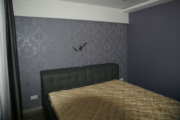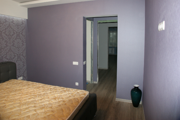 Итак, спальня 12 метров. Самая аленькая комната в квартире.Решили оставить её себе. В спальне, кроме того что есть сейчас, будет ещё только консоль небольшая на стене противоположной от изголовья и картина (хотя вывод под телек сделали, но на всякий случай)