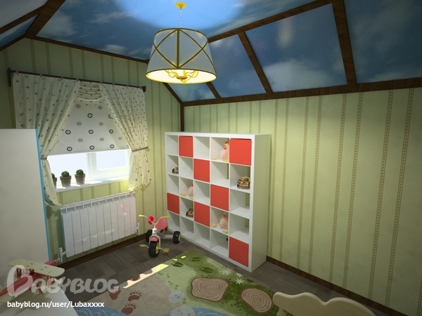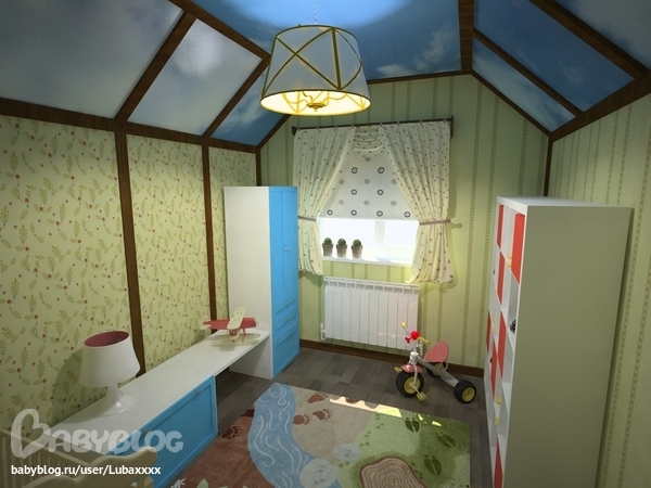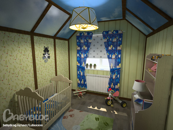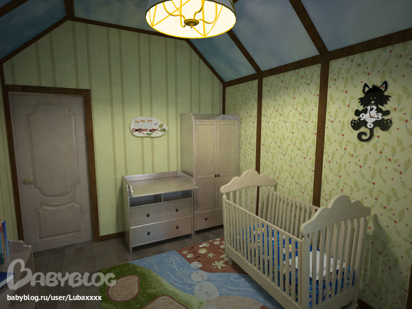 Мебель выбрали Икеевскую, чтобы было бюджетнее, т.к. пока с деньгами туговато, всё уходит в строительство, но подготовить комнату к рождению ребёнка всё равно нужно. Выбрали стуву, как самую яркую и позитивную. А вот теперь думаю, может мебель серии стува заменить на Лексвик? массив дерева наверное будет гармоничнее чем пластик сочетаться с потолочными балками и природной тематикой комнаты...