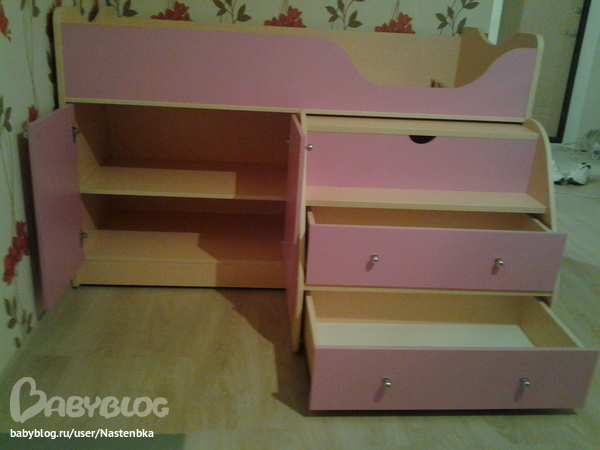 У нас такая, заказала и купила в прошлом году. Еще цела. Из неприятного только направляющие в выдвижных ящиках очень мягкий металл. Ребенок опирается на выдвинутый ящик и все - привет , но я думаю другие направляющие тоже не выдержат такой вандализм. Так что воспитываем волю, убираем игрушки и аккуратно до конца закрываем ящик. В большом отделении у сына - ангар, гараж, берлога - это зависит от игры. А еще я у Сканд-мебель заказала шкафы под книжки и одежду. Мне понравилось исполнение, фасады не дребезжат, не гнутся, такое все крепкое. Я ходила смотрела в мебели россии и другие кроватки и шкафы, но остановилась на сканде. Я довольна мебелью.