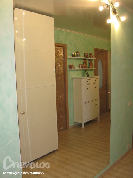 Пол у нас светлая пробка, стены нежная мята,двери будут белые, а вот какой Икеевский гардероб подходит к этой галошнице???