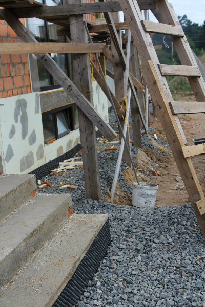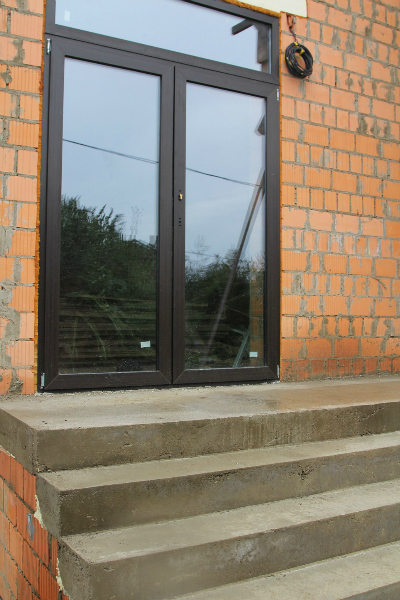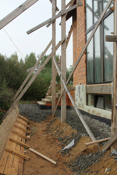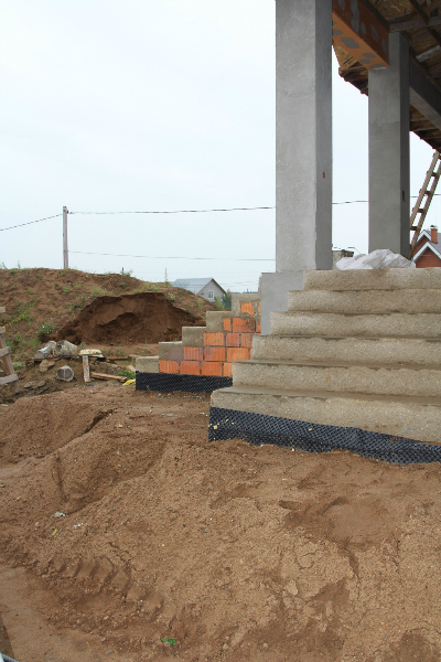Построили лестницы - к главному входу на крыльце (ступени с двух сторон) и к летнему выходу в сад.