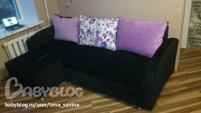 Так как когда заходишь с коридора и видишь и кухню и зал одновременно, мы решили повторить тот же сиреневый цвет но в более нежном исполнении